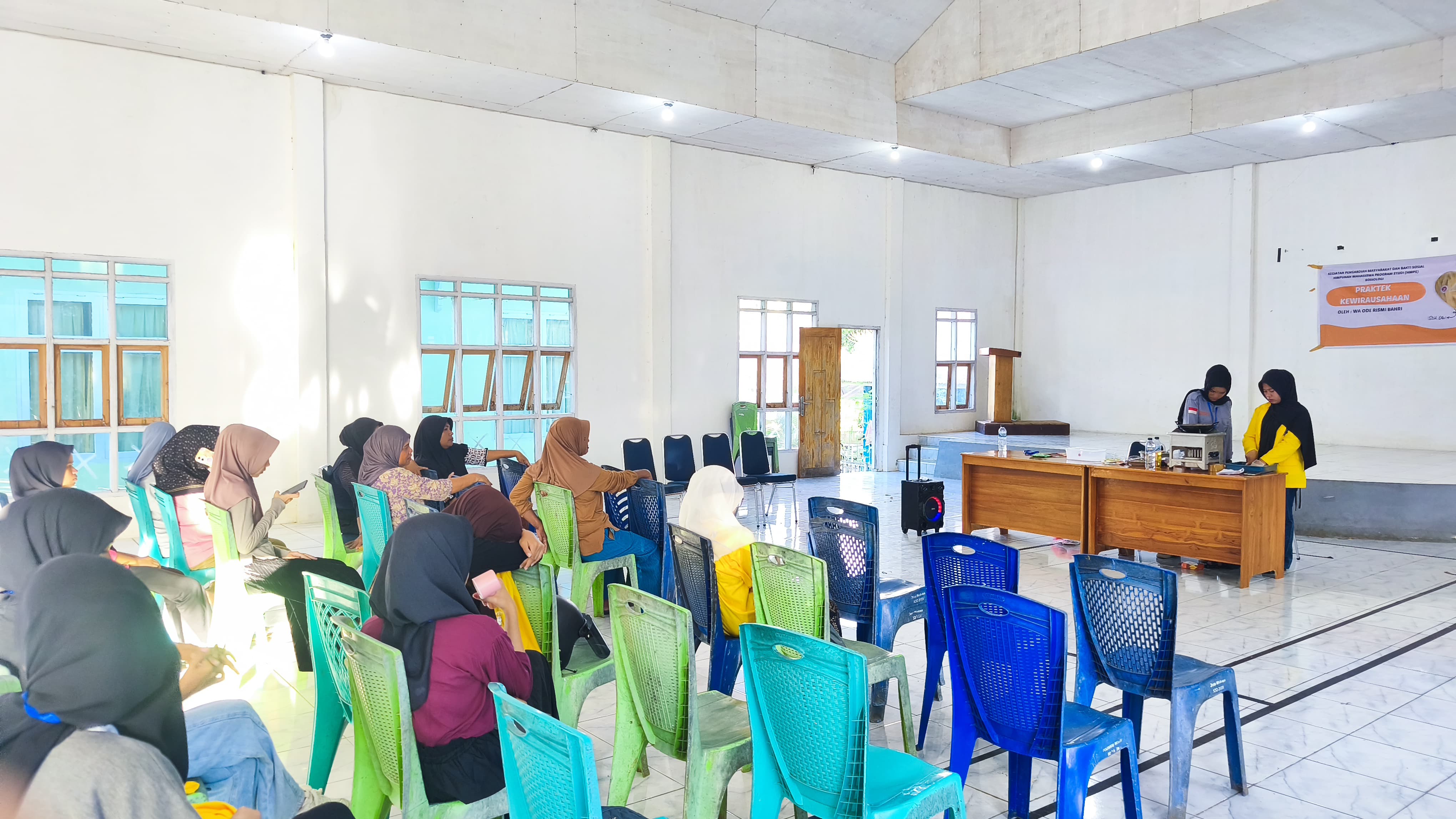 Dalam kegiatan tersebut, mahasiswa memberikan pemaparan mengenai pentingnya kewirausahaan sebagai peluang dalam meningkatkan kemandirian ekonomi. Selain itu, dilakukan juga diskusi dan berbagi pengalaman terkait ide usaha yang dapat dikembangkan sesuai dengan potensi lingkungan sekitar.